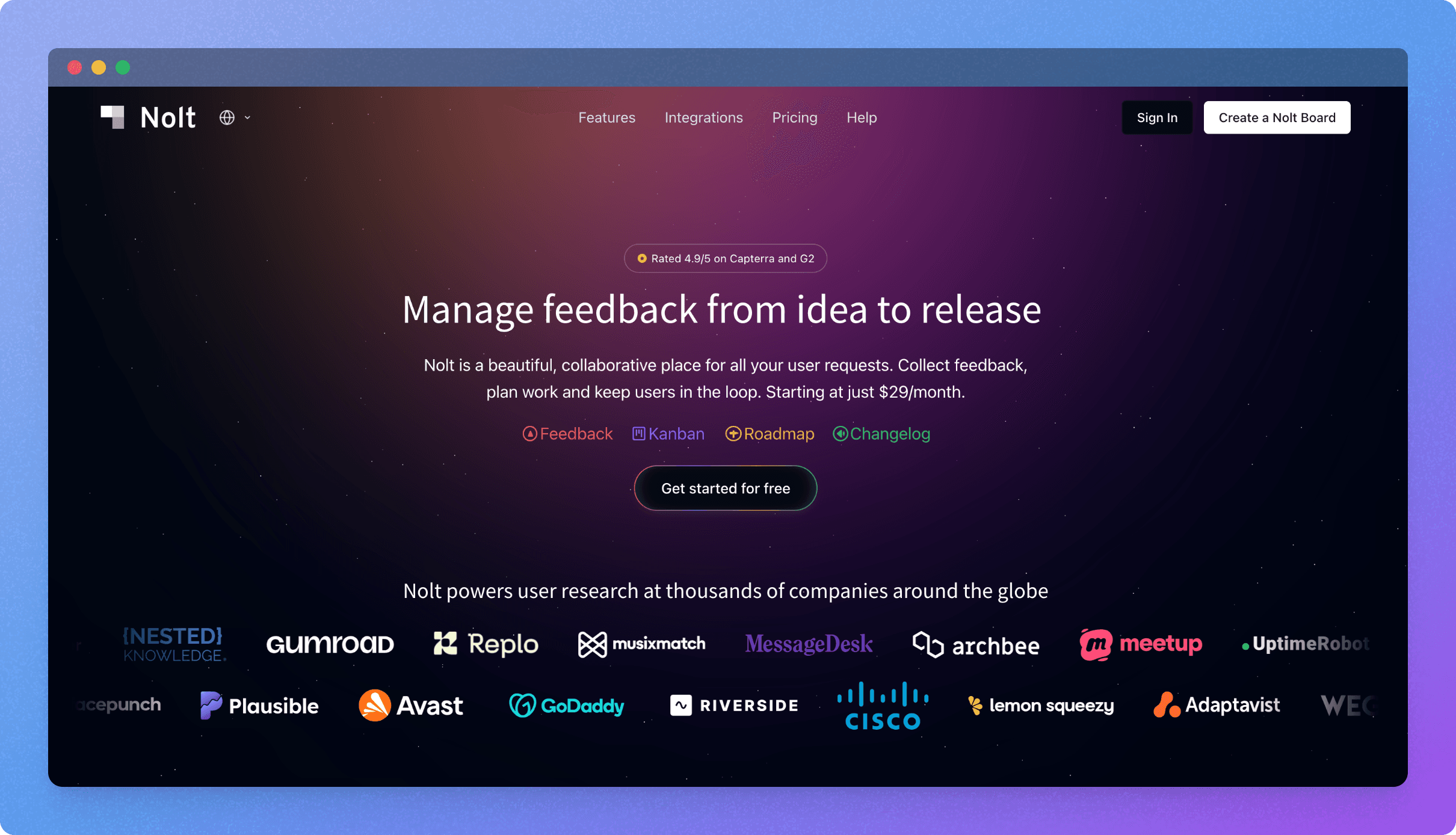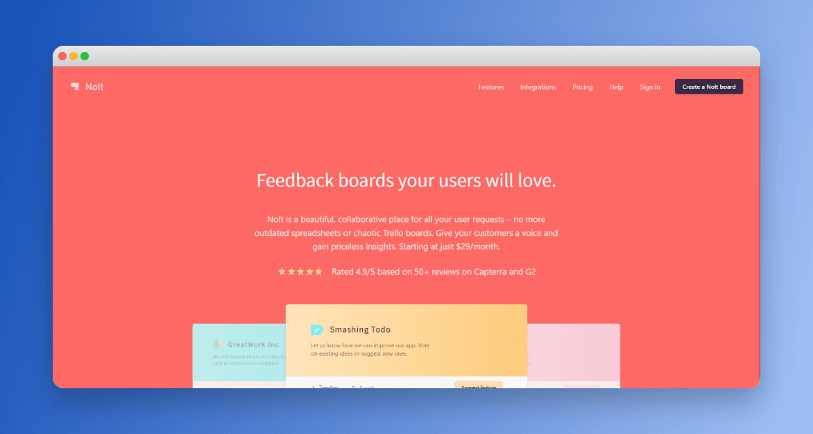 Nolt keeps in mind startups and developer-led products, and so simplifies the whole customer feedback management just like Frill does. So we’ve found Nolt as another top alternative to Frill.