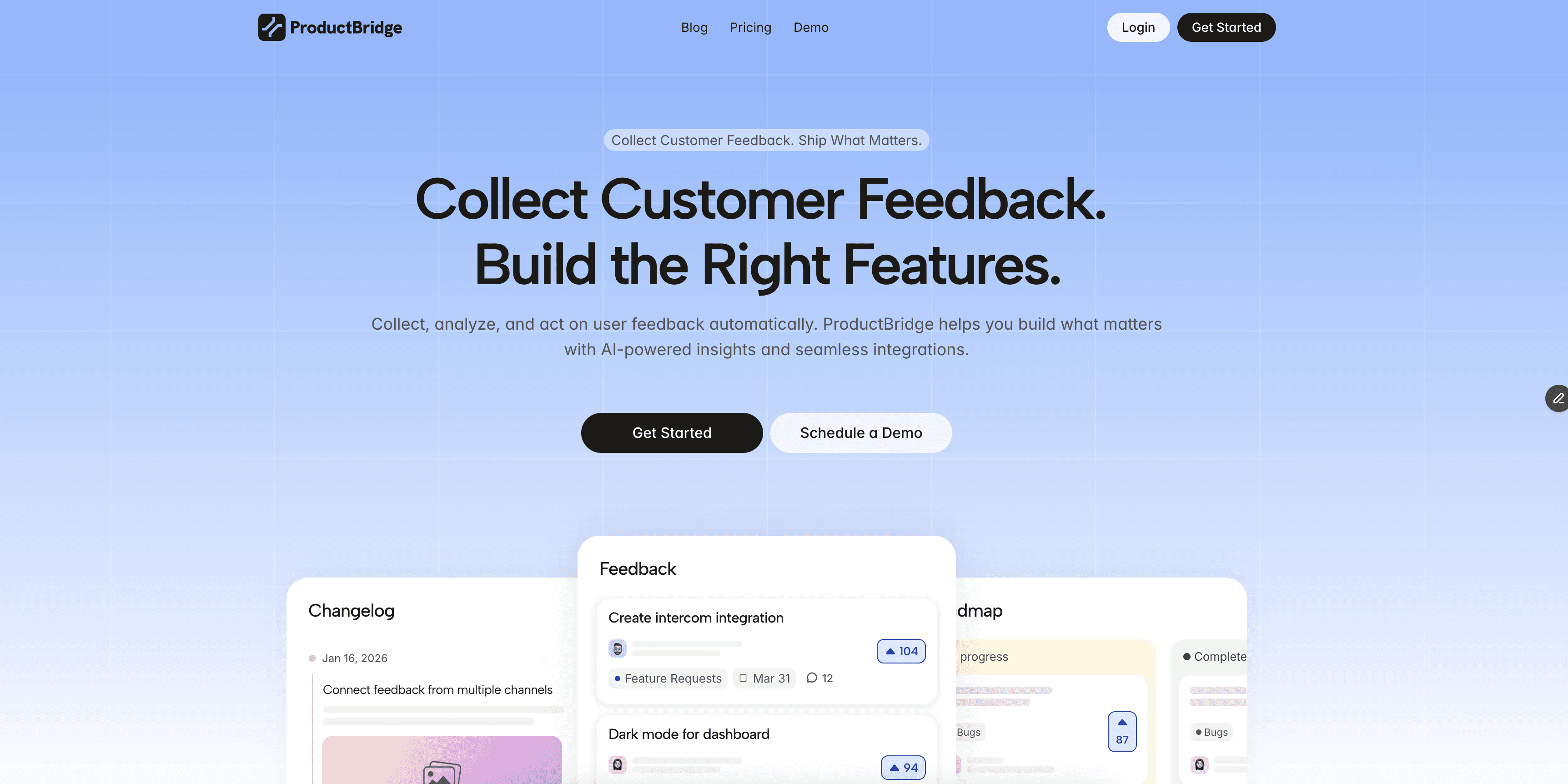 Productbridge is a top and strong Frill alternative tool which centralizes your complete feedback management with built-in AI-powered insights.